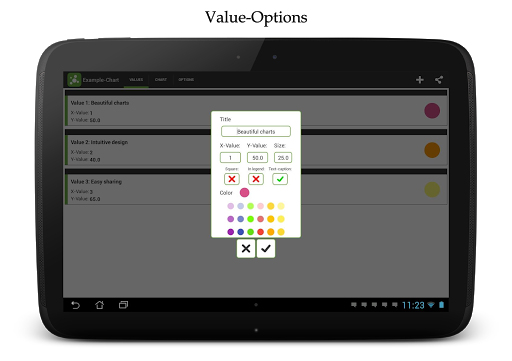 Charts are a great way to communicate information visually. Chart Maker Pro: Bubble Chart helps you to create, design and share your own bubble charts within minutes. Perfectly suitable for business and professional bubble charts. With its intuitive design and controls Chart Maker Pro: Bubble Chart is the best App for mobile bar chart creation.