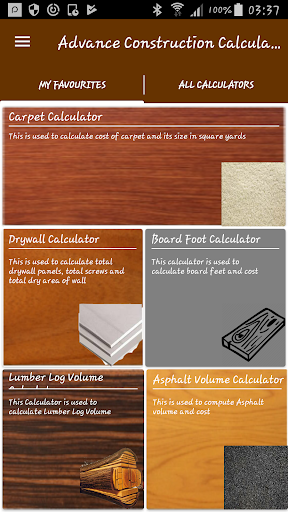 This app includes all calculators including all the calculator for constructions. The application includes the following calculators with interactive interface.
