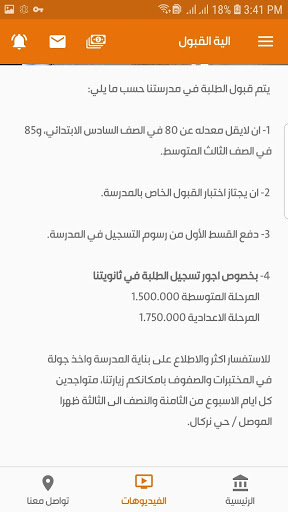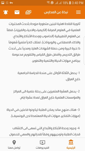 القسم العام: يتيح هذا القسم المعلومات العامة الاساسية والتعريفية لكل اخبار ونشاطات وكوادر المدارس وطرق التواصل معها: