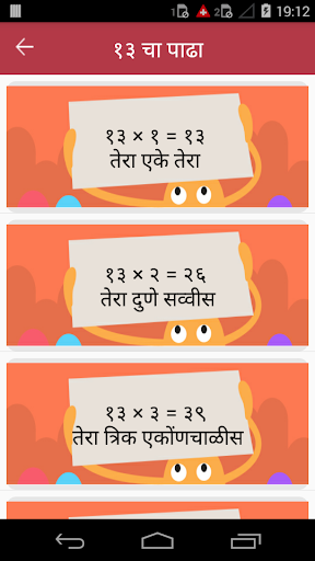 Learn multiplication tables for Marathi Kids in this Marathi Padhe app.