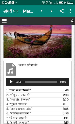 Marathi Koligeet for your complete entertainment. This app contains some of the best koligeete tunes ever produced in Marathi music. Songs can be streamed and listened even when the app is the background.