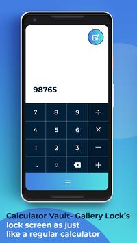 This app locker is designed as simple calculator. Calculator Vault- Gallery Lock app open only by secret code that is set by you other wise it functional as simple calculator. This way no one knows your mobile had installed gallery lock and you can secretly hide pictures to keep safe from others by this Smart Calculator.
