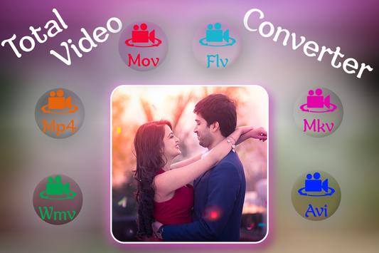 Total video converter is used to convert a video in different different formate like , avi,divx, flv, m2v, m4v, mjpeg, mkv, mov, mpg, ogg, ogv, rm, rmvb, webm, wmv, dv4 etc.Some device