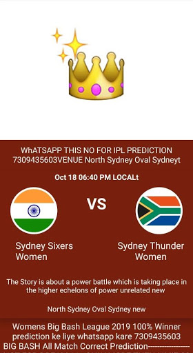 to win the toss, top bowler, top batsman and others cricket batting types.In this app you will find a list of all the upcoming cricket matches.