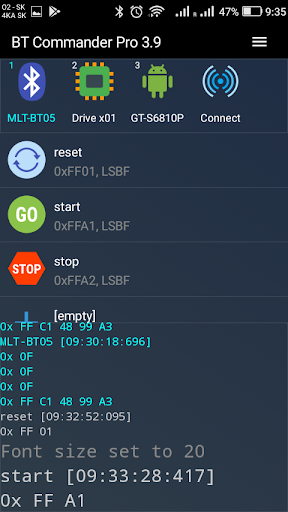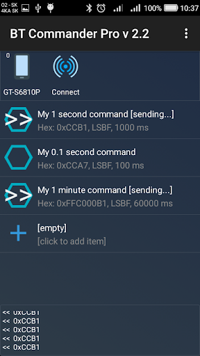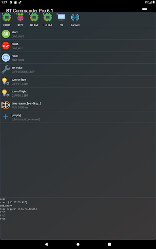 Bluetooth Commander is Bluetooth terminal app for managing low level communication between your Android smartphone and Bluetooth devices (one or multiple) such as microcontrollers, Arduino, processor boards or other Bluetooth terminals. Application allows simultaneous connections to multiple devices with traffic diagnostic functions and contains interface for creating database of user defined commands.