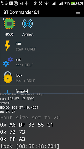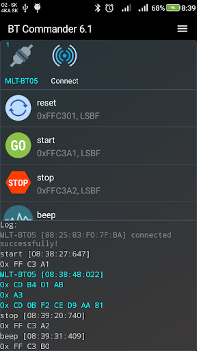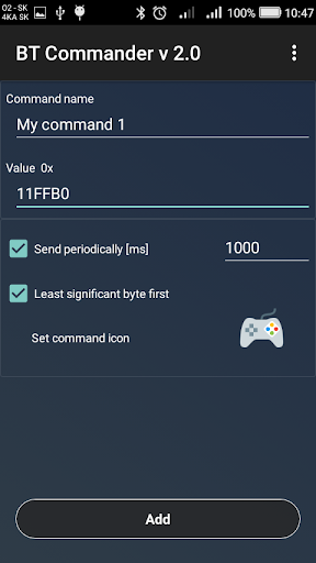 Bluetooth Commander is Bluetooth terminal app for managing low level communication between your Android smartphone and Bluetooth devices such as microcontrollers, arduinos, processor boards or other Bluetooth terminals. Application allows connection to Bluetooth device with traffic diagnostic functions and contains interface for creating database of user defined commands.