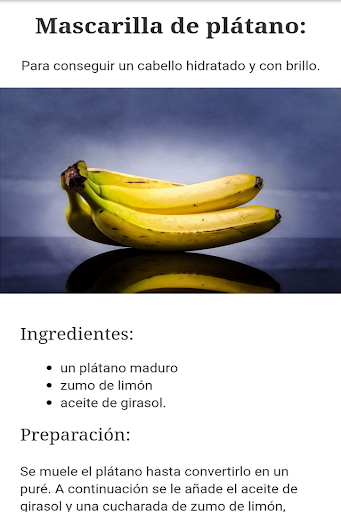 En la app encontraras recomendaciones de cada cuanto debes usar tu mascarilla casera para el cabello, dependiendo si tienes el cabello seco, cabello graso, o cabello normal.