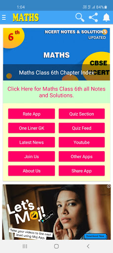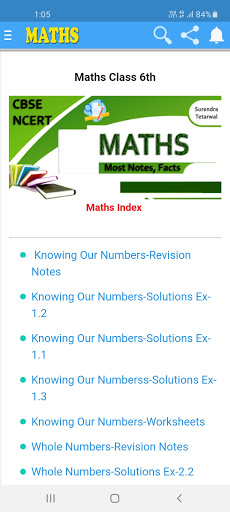 Mathematics Class 6th CBSE Notes & NCERT Solutions Mobile App