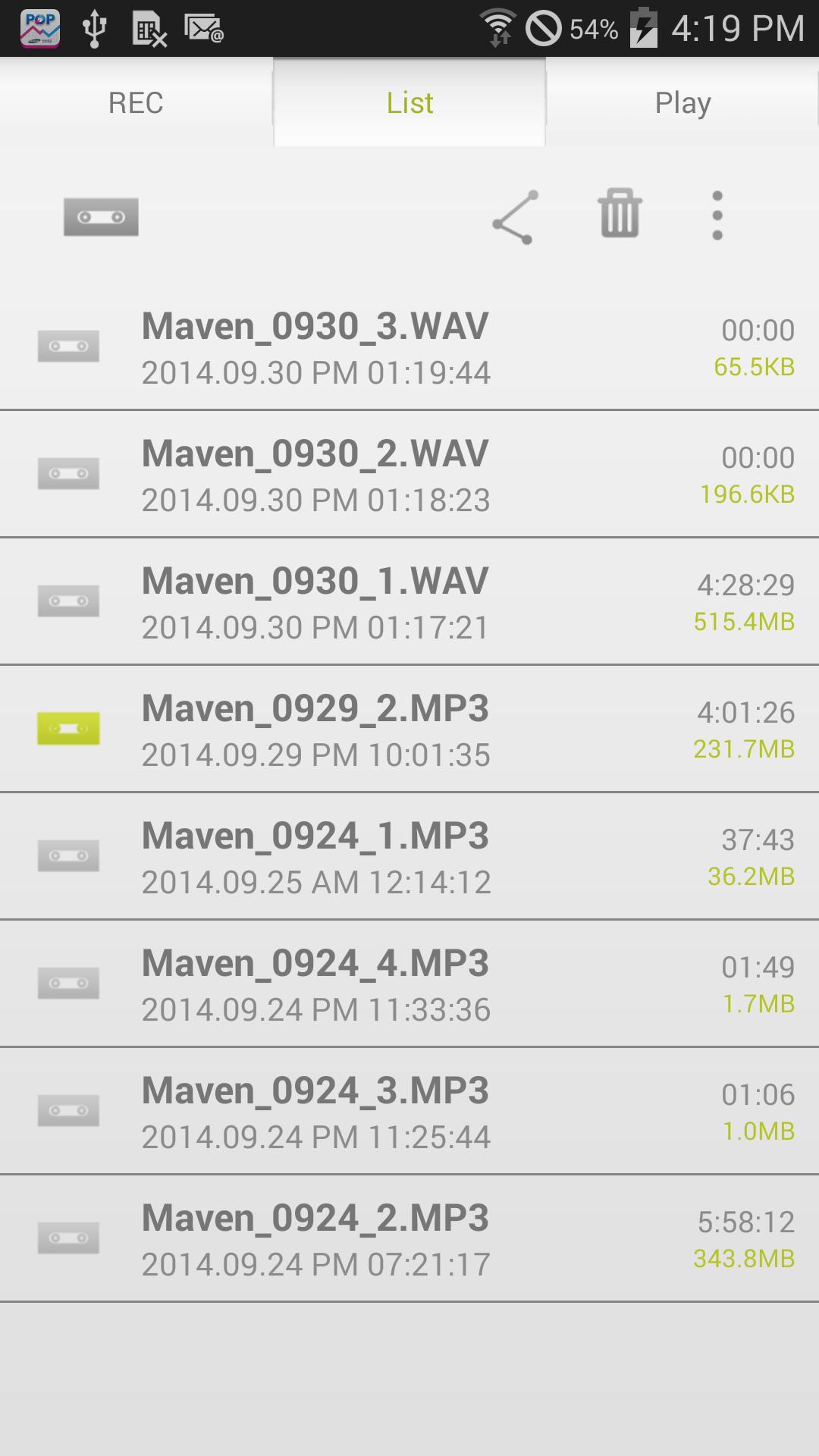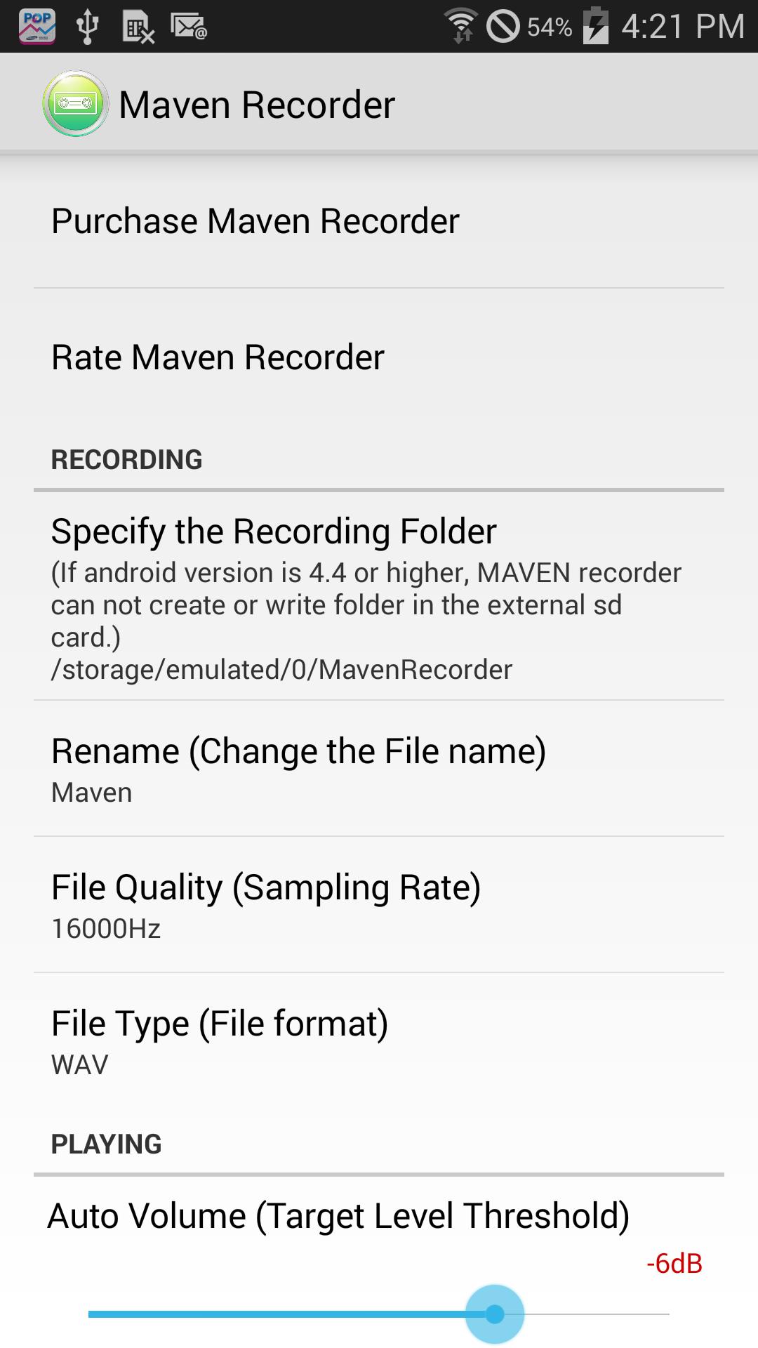 (If android version is 4.4 or higher, MAVEN recorder can not create or write folder in the external sd card.)