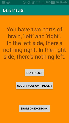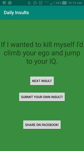 Daily Insult makes you and insult master through giving you a crazy savage insult everyday! These insults are funny and savage and are sure to help you win any argument and give you a laugh.