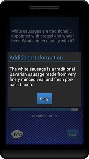 more than 150 questions about culture, history, current topics, clubs, the Oktoberfest, FC Bayern Munich and many other things. Most questions also provide additional information and backgrounds to the questions.