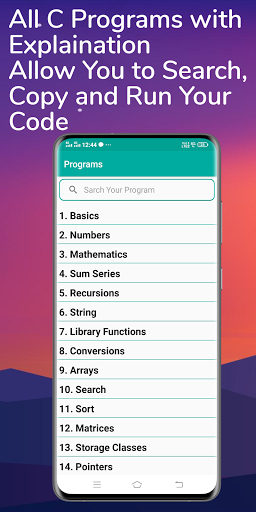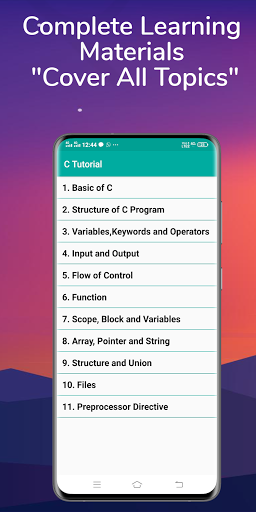 This Learn C Programming app learn you to carry basic C Programming notes in your android. It contains about 1000 C Programs, 100 FAQ's and Best Tutorial.