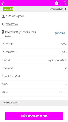 - ร้านขายของสดสามารถเปลี่ยนสถานะของคำสั่งซื้อได้ผ่านแอพ