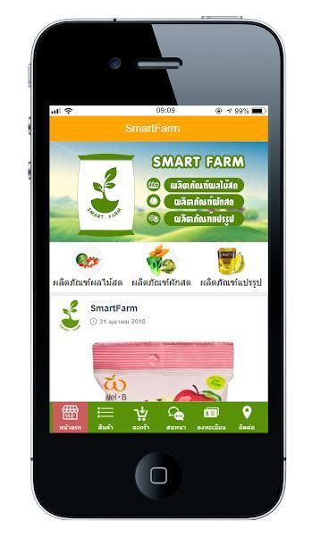 SmartFarm เป็นแอปพลิเคชั่นที่รวบรวมผลิตภัณฑ์ทางเกษตรมากมายหลากหลาย ทั้งผลิตภัณฑ์ผักสด ผลไม้สด และผลิตภภัณฑ์แปรรูป เพื่อให้ผู้ใช้งานได้เลือกซื้อซึ่งผลิตภัณฑ์มาจากเกษตรกรโดยตรง ทั้งรายใหญ่และรายย่อยได้ถูกรวบรวมมาไว้ในแอปพลิเคชั่น SmartFarm