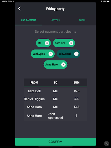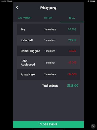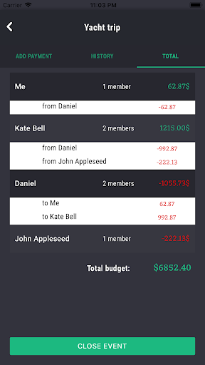 CapK Calc is the easiest way to split bills and share expenses with friends. Forget about this awkward and tedious situation when you are trying to calculate who owes whom and how much. Now you can concentrate on things that are important to you, without having debts in your mind.