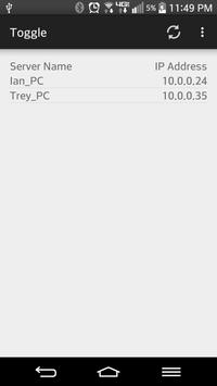 Required: Toggle Server is a program that runs on the computer you want to control. In order for your phone/tablet to see the computer, the server must be running. The server is available here: http://810labs.me/toggle/ Server requires Java JRE 1.7 to run. Current server versions is 2.