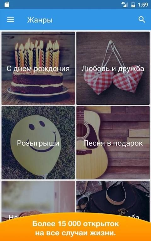 In the application base of over 15,000 beautiful, fun and interesting greetings, funny pranks and jokes.