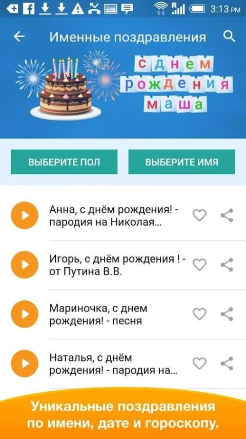 Birthday greetings, anniversary, wedding, with a mobile phone. Jokes, fun and Prank. A declaration of love and compliments. Tunes of your favorite songs.