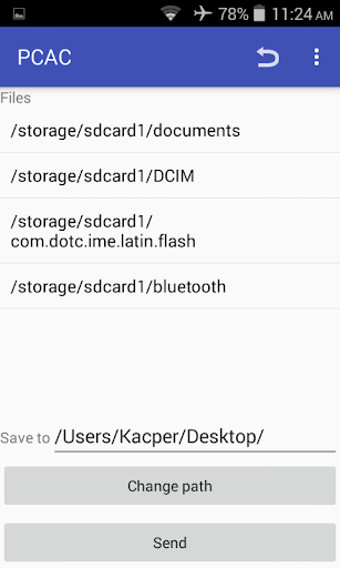 Using PCAC you do not need USB cable, all files will be sent through Wi-Fi in the local area. Also, you do not need to know your IP address, because the program automatically discovers PC with running PCAC.