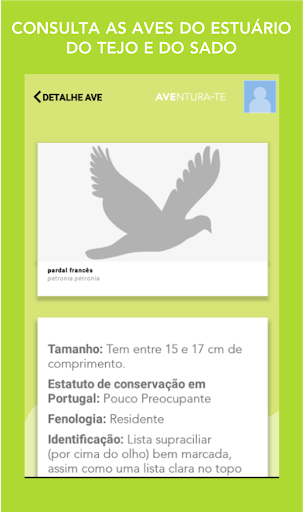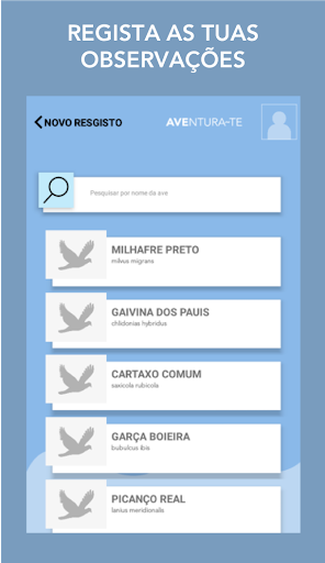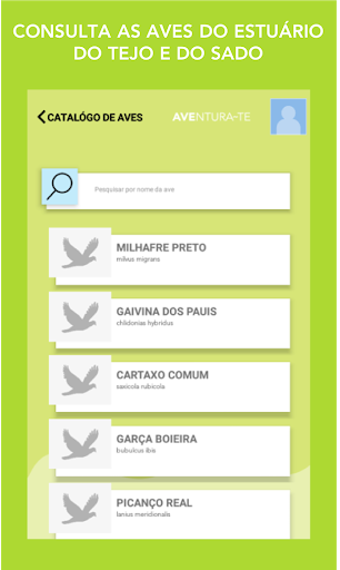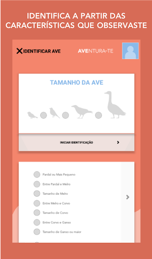Permite identificar aves a partir de uma foto capturada por ti e/ou através de algumas das características observadas;
