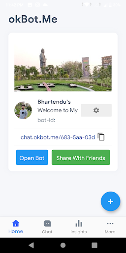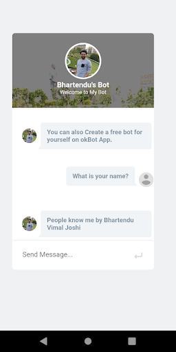 okBot is an App that helps you Create a ChatBot of Yours so that people can have chat with your Bot. You just need to fill a form to create your own Personal AI ChatBot.