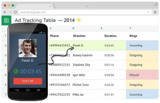 Tag calls right on your phone. Add and fill out the columns you need, share the spreadsheet with your co-workers.