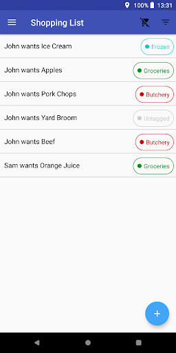 You can create as many items as you like, and tag them with as many tags as you like. Each tag can have whatever name you want, and any colour, and you can filter your shopping list based on tags. For example, you could create a tag for each store, and filter to show only items tagged with that store while in it, so you can see what you need to pick up while you're there.