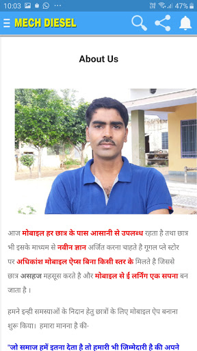 इस ऐप में ITI Mechanic Diesel Trade के सभी महत्वपूर्ण प्रश्नों का समावेश किया है। यह आपको न सिर्फ शैक्षणिक परीक्षाओं बल्कि प्रतियोगी परीक्षाओं में मददगार साबित होगा । ट्रेड पर सरल भाषा में और संक्षिप्त जानकारी देने का प्रयास किया गया है।
