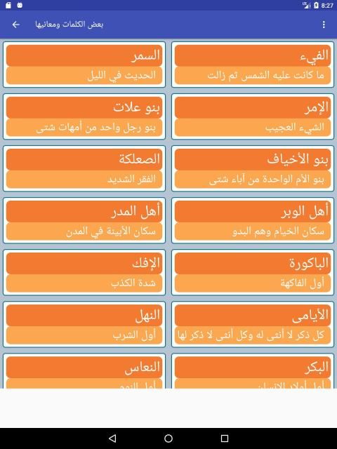 Application "anecdotes Arabic language" is a collection of words and information that rarely we encounter in our daily lives, but we encountered do not know its meaning. For this it came this application to provide some of what the wealth of Arabic words and meanings of unrivaled if we compare the other languages.