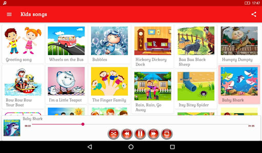 The music collection "Kids Songs in English" contains short and simple songs that will help your child get acquainted with the first English words.