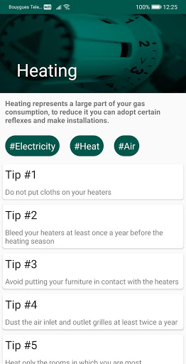 We give you advices with every equipment you have so you can decrease your consumption of water, power, heat, gas and electricity and start to make economies!