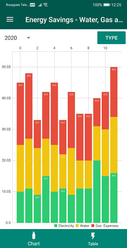With Energy Money Saver, you can also track your energy consumption month by month so you can understand with charts and tables how much resources you use and which ones cost you the most.