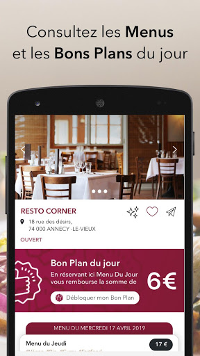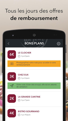 Et, régulièrement, des milliers de Bons Plans offerts : jusqu'à 10€ remboursés sur votre repas au resto, midi ou soir, sur simple envoi de la photo de votre addition.