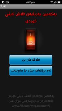دوای ماوه‌یه‌ک سوپاس بۆ خوا توانیم به‌رنامه‌ی فلاش لایت ته‌واو بكه‌م بۆ ئێوەی خۆشەویست 😘😘 به‌ ناوی FL4K بەکاردێت بۆ کردنەوەی لەهەر کات و شوێنێکدا ..