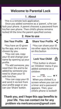 *If you add someone as a "parent", he/she can lock your phone at any time or you can lock the ones you add as "children".
