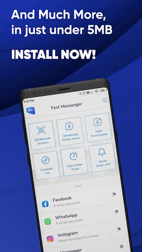 Fast Messenger App helps you to quickly connect with your family and friends. It's a very small messenger as it takes less than 5 MB of your phone data. Access your social media accounts like Facebook, Instagram, Snapchat etc. without the app.