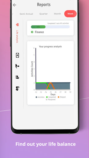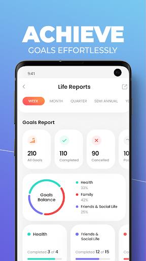 The Application combines features that helps you set clear unlimited goals, it works on raising your productivity and performance into living a happy balanced and efficient life.