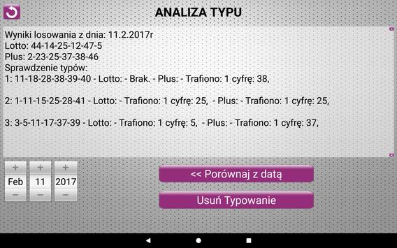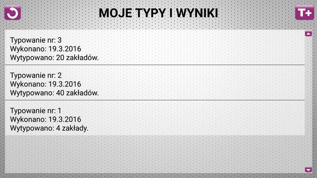 Użytkownik może sam również pozostawić los w swoich rękach, i wprowadzić własne typy do aplikacji. Po wprowadzeniu typów czy też po ich wygenerowaniu ma możliwość sprawdzenia typów z aktualnymi wynikami jak i z tymi z 27 stycznia 1957 roku.