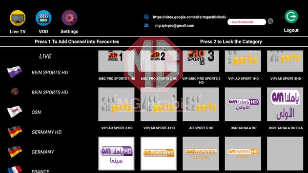 هذا التطبيق لمشاهدة الأفلام والقنوات عن طريق الانترنت على أندرويد التلفاز (Android TV). إنها مصممة خصيصا لنظام الأندرويد التلفازي (Android TV BOX) لكي يعمل بشكل افضل . وعلى المستخدم فقط الاشتراك ومن ثم الاستمتاع في مشاهدة افضل القنوات المشفرة والمباريات وبى ان سبورت. وللإشتراك إرسل على الايميل (mg.iptvpro@gmail.com).