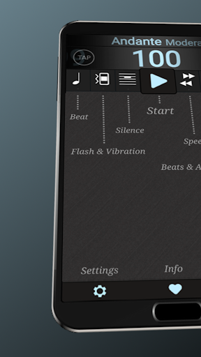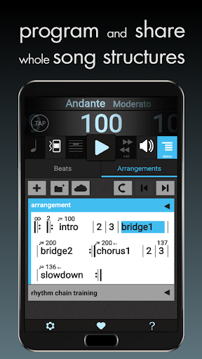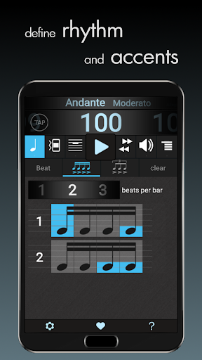 - set your tempo by slide, tap, numeric input or tap-in