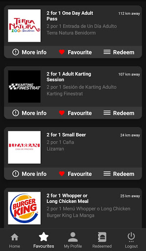 Mi 2 por 1 is a money saving app with hundreds of 2 for 1 offers in Spain including Breakfast, Casual Dining, Fine Dining Restaurants, Drinks, Beauty Treatments, Fitness Classes, Leisure Attractions and much more… Including many of your favourite places but also some hidden gems, we have a wide range of places to visit and things to do for all ages across our 3 fantastic categories. Food and Drink, Leisure and Attractions, Health and Beauty. New offers are added all the time, create a profile and track your savings throughout the year
