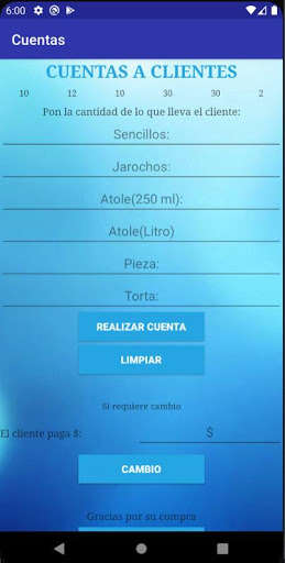Esta es una app que ayuda al usuario de un cierto ramo del comercio, a realizar cuentas a su empleado y a sus clientes