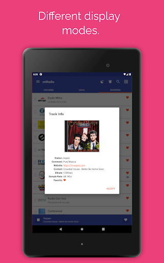 miRadio gives you access to over 3,000 Argentine radio stations. You will find stations of all genres, for example: