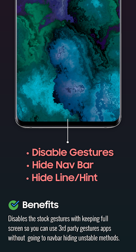 It entirely removes the Nav bar with it's Line/Hint but it keeps the gestures fully active. It gives a full and super clean immersive experience without losing any of gestures functions " Like swiping left/right to switch between apps".