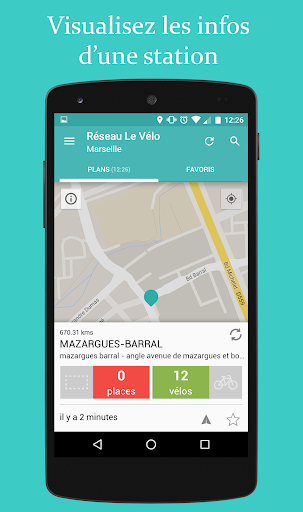 "Marseille Le Vélo" is a tool allowing you to view the status of bike stations "Le Velo" network, of Marseille.