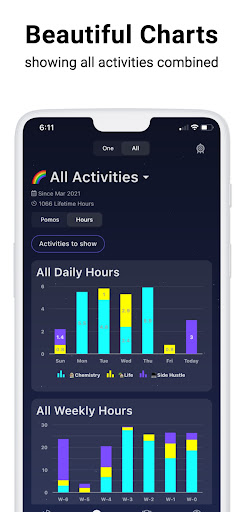 • Create activities like Study, Work, Side Project, Life Admin or Chemistry 101.