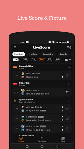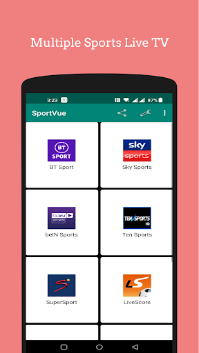 sports app! With this app, you can enjoy seamless access to 10 different television sports channels, including popular options like BT Sport, Sky Sports, and ESPN. You can enjoy the latest live scores and updates from leading sites like Livescore, Flashscore, and more. Not only does this app provide comprehensive coverage of all your favorite sports, but it's also incredibly user-friendly and easy to navigate. You can customize your settings to receive notifications about your preferred teams, events, and matches, ensuring that you never miss a moment of the action. What's more, our app offers a sleek, modern interface with intuitive navigation, making it easy to find the channels, scores, and updates you need with just a few taps. Whether you're a die-hard football fan or a motorsports enthusiast, SportVue has something for everyone. So why wait? Download SportVue today and start enjoying the ultimate sports experience, all from one convenient app.