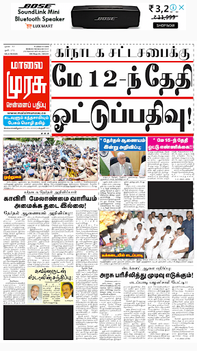 Malai Murasu newspaper is published from Chennai, Madurai, Coimbatore, Vellore, Tirunelveli, Salem, Pondicherry