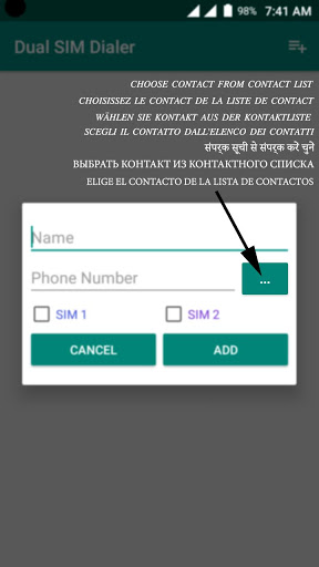 You can choose the name and phone number from contacts or fill the fields by yourself.