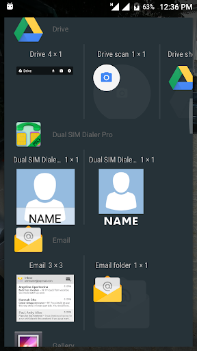 Long click on empty space in your launcher >> choose widgets >> find Dual SIM Dialer Pro and drag and drop the widget into empty space.